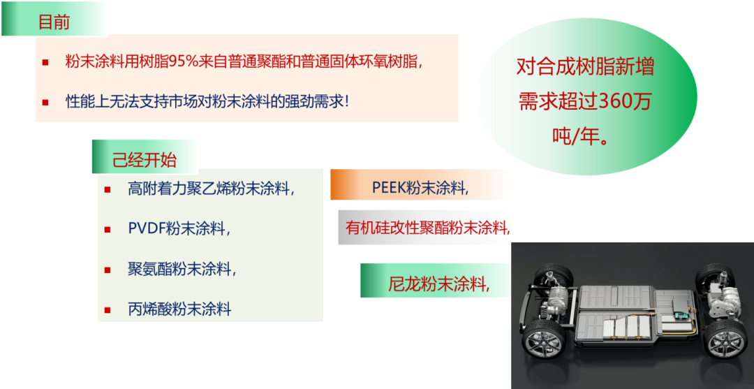 来源:PCI可名文化网址:https://mp.weixin.qq.com/s/XtCoUSFwgiZTbbB7dqJNSw ![]() 2024年,所有企业将面对一个“卷”字当头! 作者 | 杨向宏 资深涂料行业从业者 01 2024年观察 本人走访了很多涂料企业,包括与之相关的化工贸易商,不少人乐观看2024年,他们不认为自己的企业2024年没有增长的预期,将2024年增长目标定在10-20%的企业大有人在。毕竟2023年企业还活得滋润。 个人感觉2024年市场的残酷程度远超过你的想象,你得增强你的求生欲,激发你的潜力,all in到工作上来,少点时间去玩,争分夺秒快速成长,提升自身价值含量,才能活着。 有人看到了你没有看到的未来,这个未来很快就要到来!认知的差距决定了你们未来走向的差异,生门or死门。现在没有地方可以躺平,除非你彻底离开这个行业,也是一条路。 2024年交通涂料市场需求不乐观: ![]() 2024年工程机械漆市场需求不乐观: ![]() 挖掘机数据回顾: ![]() ![]() 本人不认为2024年工程机械涂料、风电涂料、集装箱漆、木器漆、3C涂料和防水涂料的市场需求同比增长的可能性大;由于房地产众所周知的原因,建筑装饰涂料2024年同比下滑可能不止10%。 2024年,所有企业将面对一个“卷”字当头! 02 增长点来自新的下游 一、可再生能源用涂料必火 1、太阳能光伏需要大量涂料 2023年12月初,澳大利亚智库气候能源金融(CEF)主任Tim Buckley在接受采访时表示,今年组件价格将下降40%。此外,2024年底或2025年,组件的价格将下降至0.10美元/瓦(约0.7145元人民币)。组件价格厮杀激烈,近日国内公示的组件投标价屡创新低,可破0.1美元/瓦的预测还是比预想中来得早了一些。 Buckley预测的主要依据是,在全球能源环境转型趋势下,人类愈加意识到能源安全的重要性,估计到本十年末每年新增光伏容量可能达到600GW至1TW。俄乌冲突已经进于第二个冬季,巴以冲突持续升级,全球能源市场动荡加剧,人类更加看到了能源安全的重要性。太阳能光伏被公认是唯一能源安全有保障的可再生能源。 2、光伏产业、光伏辅材还助力碳中和! 我们来看光伏背板,它是组件背面的封装材料,处于光伏组件最外层,主要用于抵抗湿热等环境对电池片、EVA胶膜等材料的侵蚀,起到耐候及绝缘保护的作用,并在一定程度上提升光伏组件的光电转换效率。 背板(Backsheet)是用在太阳能组件背面,直接与外环境大面积接触的光伏封装材料,应具备卓越的耐长期老化(湿热、干热、紫外)、耐电气绝缘、水蒸气阻隔等性能。因此,背膜要在耐老化、耐绝缘、耐水气等方面满足太阳电池组件25年的环境考验,起到封装组件原辅料、保护太阳能组件、隔绝汇流带的作用。 ![]() 再看光伏支架,光伏支架是用于安装、支撑和固定光伏组件的特殊功能支架,按照能否跟随太阳转动可分为固定支架和跟踪支架。 ![]() 图 | 由作者提供 光伏支架、光伏背板需要大量防腐性能优越、高耐候的涂料。有人讲用涂料替代光伏胶膜如果成功,将是颠覆性的,生产制造过程将大为简化,成本大大降低,每年几十万吨POE、EVA胶膜被涂料取代,是一件天大的事。从原理上讲,完全可行,只是你的性能得满足要求。 也有人在努力研发太阳能玻璃面板上的高透、超自洁、超耐候涂料,这个市场需求大到有多令人恐惧,不用解释了。 2022-2030年全球光伏新增装机预测(GW): ![]() 图 | 由作者提供 二、 新能源汽车涂料更需要大量高性能涂料 电池是新能源汽车的核心部件,新能源汽车所装配的动力用锂离子电池包,通常由多个单体电池模块组合而成,机械损伤、热冲击、内短路、在高温环境下长期连续频繁快充等情况,都有可能导致个别单体电池的“热失控”。 “热失控”会传导蔓延,导致周围单体电池温度迅速升高,温度可高达500-1000℃,最终引发电池包整体燃烧、爆炸的灾难性后果,带来巨大的安全隐患。 “绝缘、阻燃、防火”是新能源汽车电池必须具备的安全性需求,如果新能源汽车电池涂料具有防火绝缘等特殊功能,正好可以消除新能源汽车电池存在的安全隐患。 ![]() 图 | 由作者提供 以2022年为基准,到2030年全球新能源汽车市占率可增至70%,6倍增长空间。动力电池汽车、燃料电池汽车将取代传统燃油车,趋势不可逆转。 三、轻量化颠覆涂料应用 这是中国涂料企业绕道超车绝佳领域,未来不止10倍增长空间。 ![]() 图 | 由作者提供 1、轻量化是实现节能减排的重要目标之一! 传统汽车整车重量每降低10%,油耗降低6%-8%。 我国在2025年燃料消耗目标值为4L/100km,政策要求下使得主机厂加速轻量化布局。同时,纯电动汽车整车重量每降低10kg,续航里程可增2.5km;减重10%与20%的情况下,能效分别提升6.3%与9.5%。 在节能减排压力和新能源汽车性能提升需求的双重推动下,汽车轻量化正在加速。2021年我国汽车零部件行业市场规模呈增长态势,约为4.1万亿元,同比增长13.9%。高性能复合材料具有低密度、易成型、高强度、耐腐蚀等特点,可广泛应用于车身各系统,在降低车身重量的同时兼具突出的安全性能,已成为当前汽车轻量化技术发展中的首选材料。 先进复合材料是新能源汽车轻量化的必然选择! 先进复合材料的可设计性、可制造性和工艺多样化是金属材料所无法比拟的,复合材料是一种“可设计”的材料,即通过改变纤维或基体,可以在极大范围内设计材料的性能。 先进复合材料投资成本、制造成本和维护成本最低;制件的比强度、比疲劳强度和比刚度